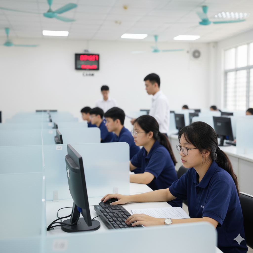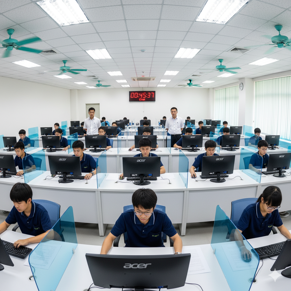 Hệ thống được cài đặt trên máy chủ nội bộ, cho phép quản lý tổ chức thi – kiểm tra tập trung, danh sách thí sinh và kết quả thi.